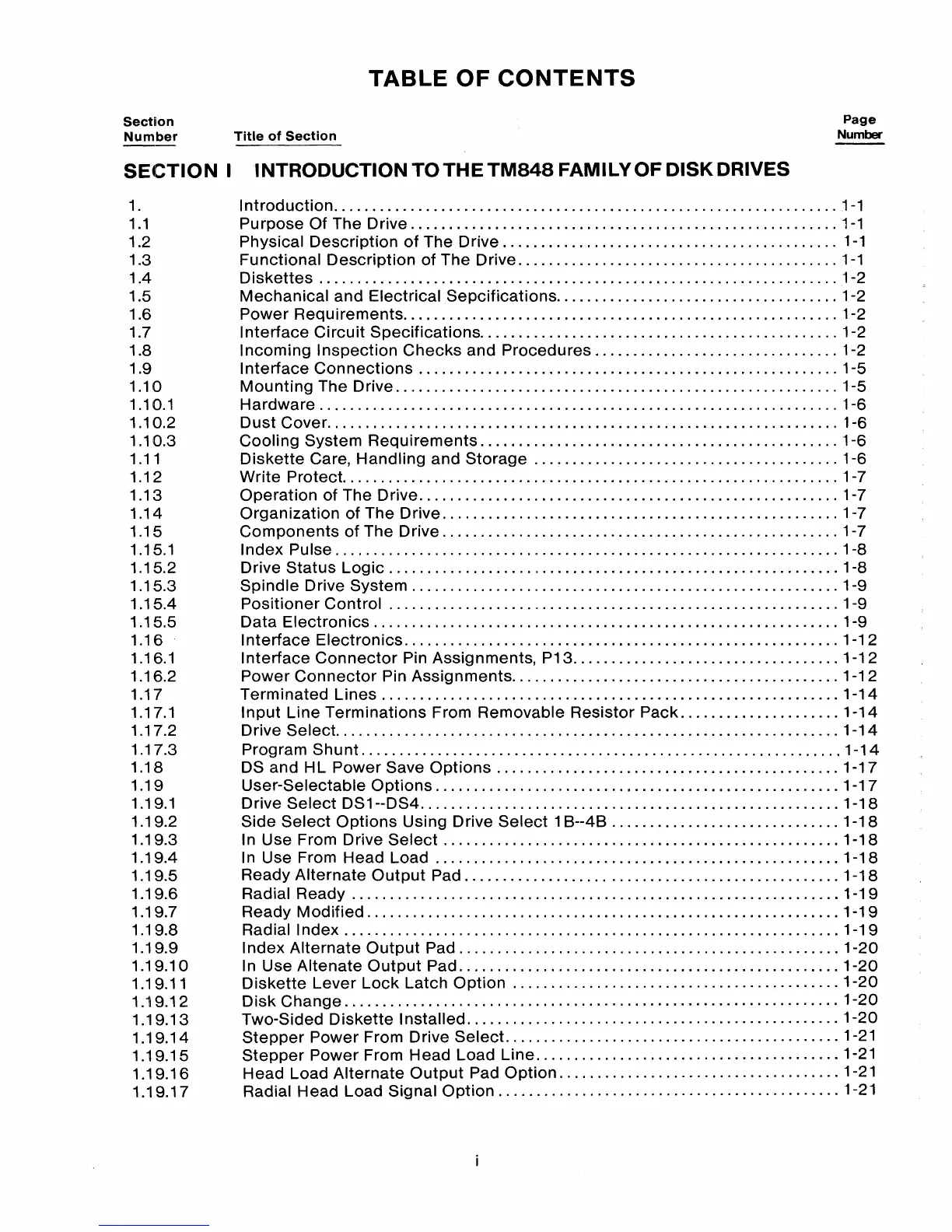 Tandon TM848-1 - Default Chapter; Table of Contents