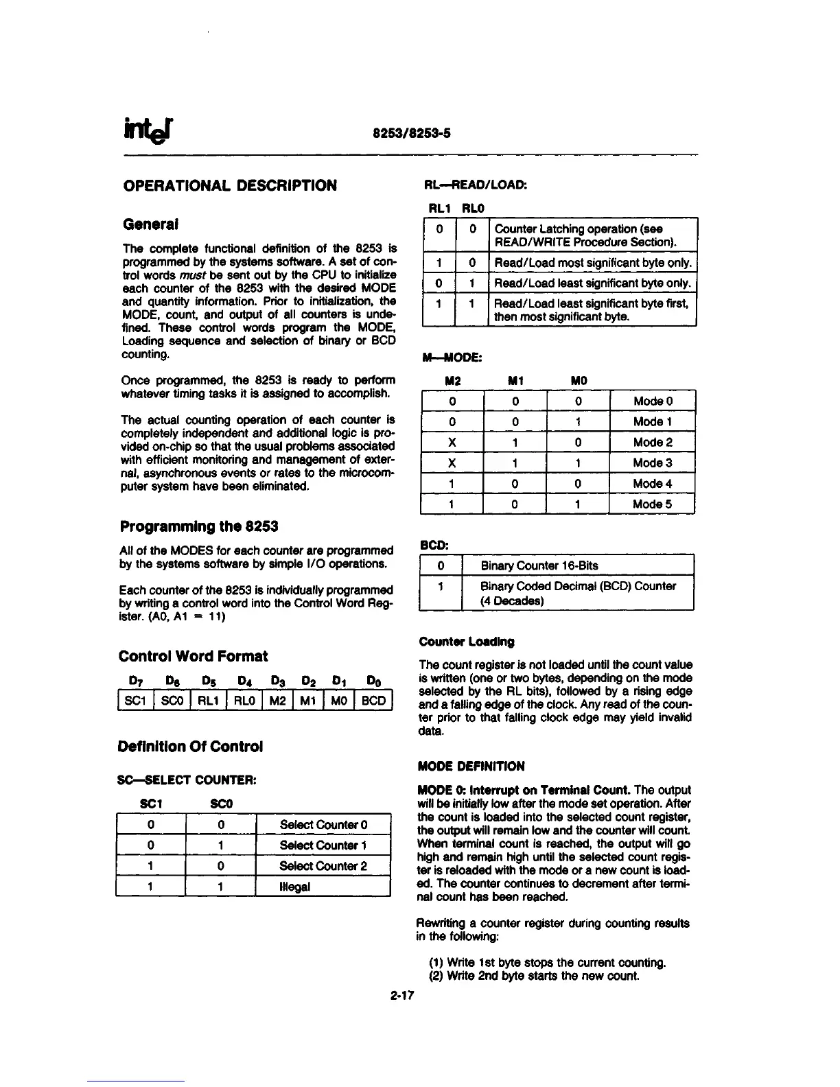 The complete functional definition of the 8253 is