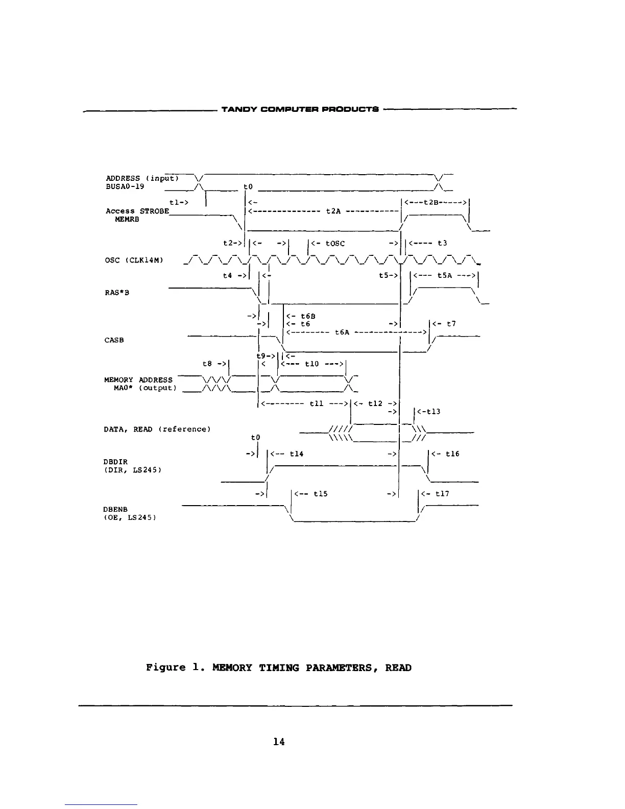 Tandy 1000 HX - Memory Timing Parameters: READ; Figure 1. MEMORY TIMING PARAMETERS, READ