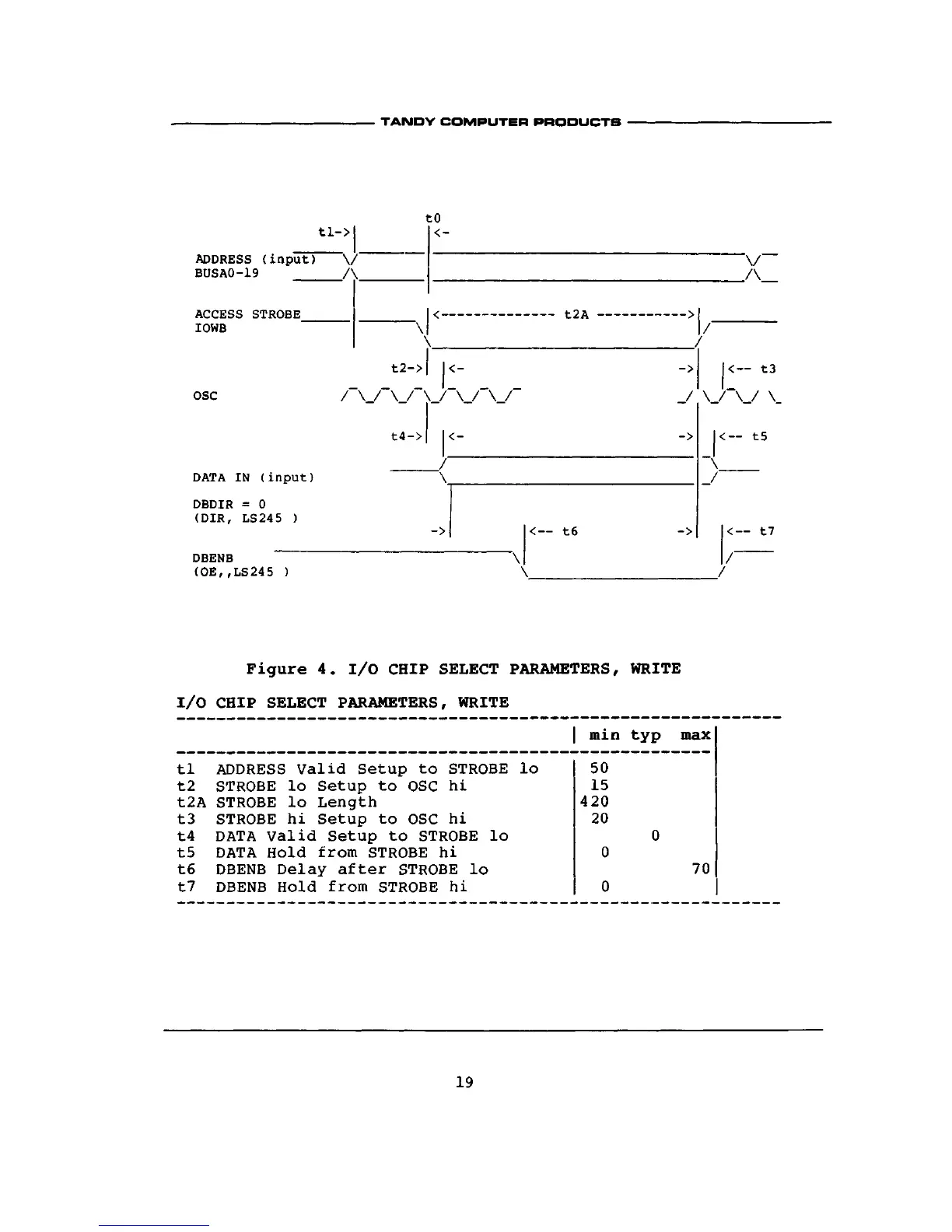 Tandy 1000 HX - I;O Chip Select Parameters: WRITE; Figure 4. I;O CHIP SELECT PARAMETERS, WRITE