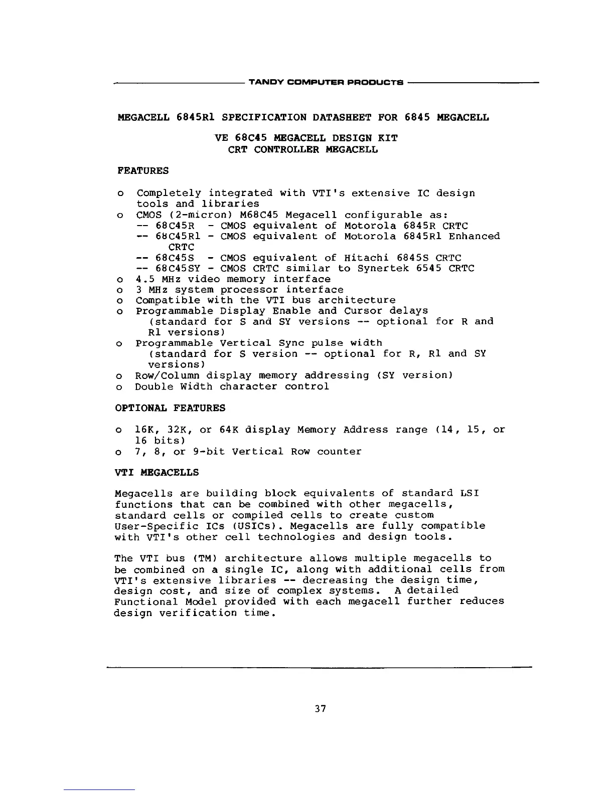 MEGACELL 6845R1 SPECIFICATION DATASHEET FOR 6845 MEGACELL