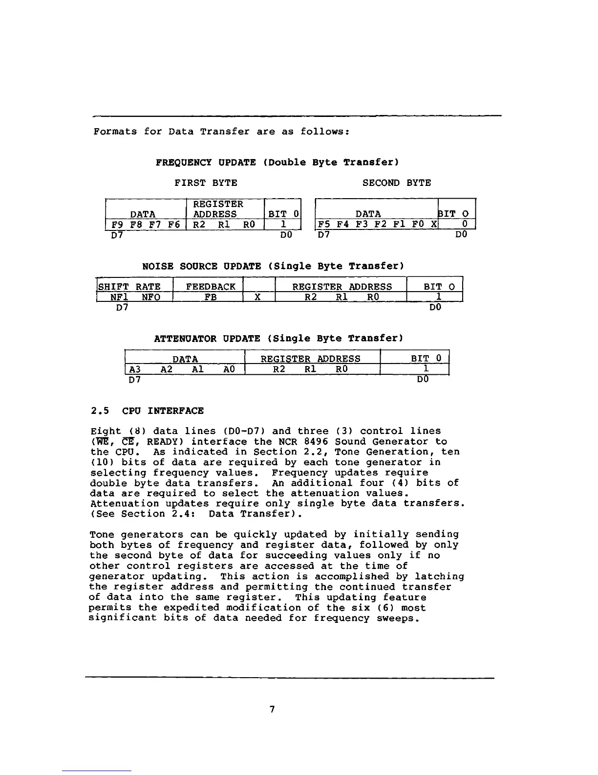 CE, READY) interface the NCR 8496 Sound Generator to