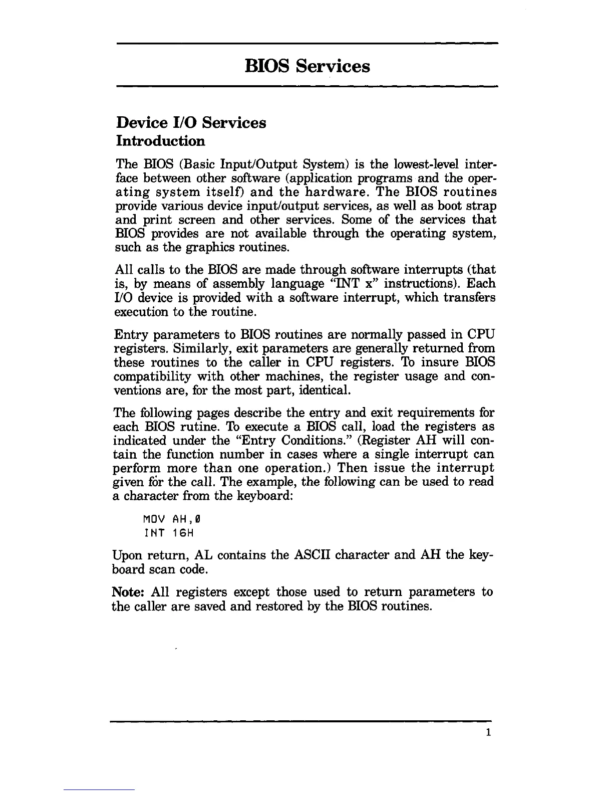 each BIOS rutine. To execute a BIOS call, load the registers as