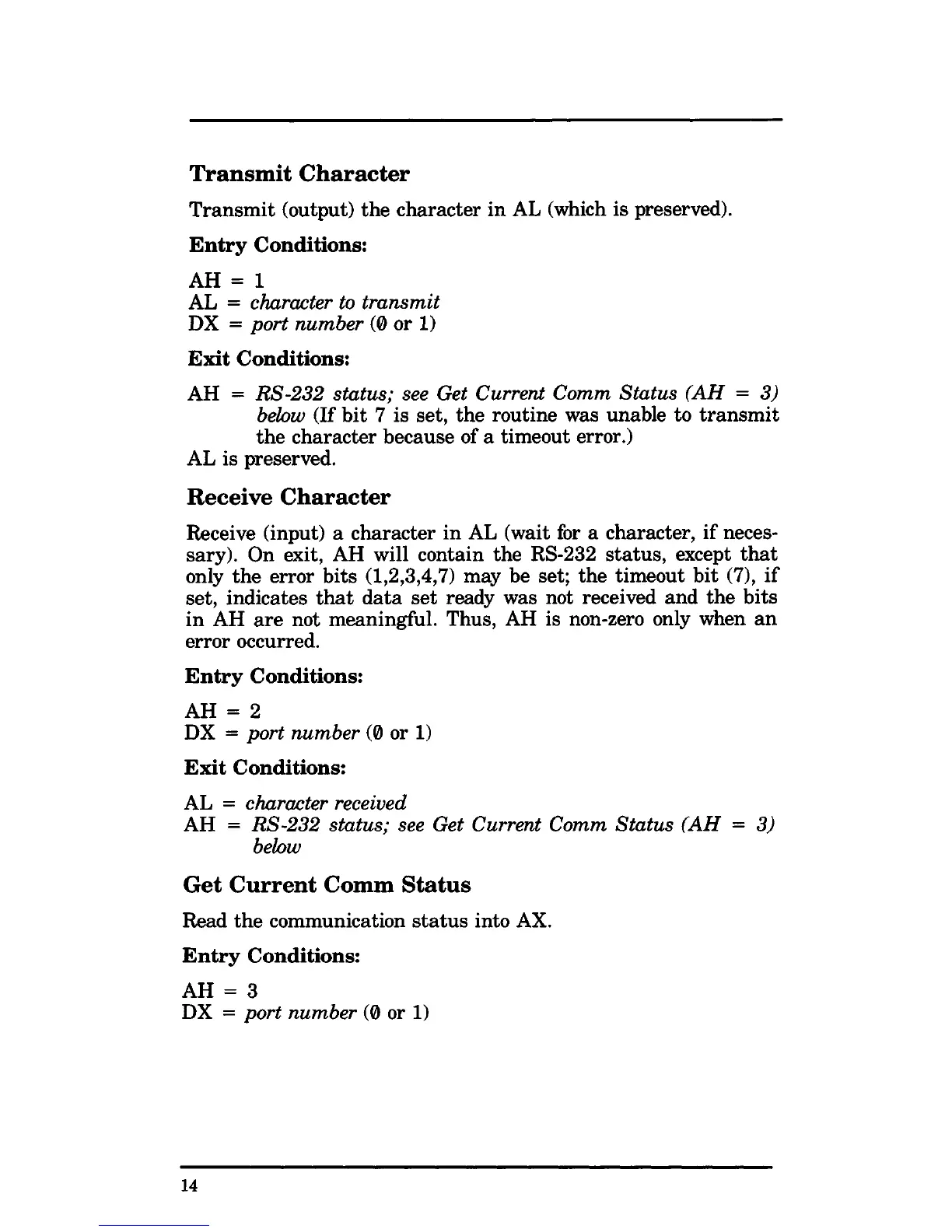 On exit, AH will contain the RS-232 status, except that