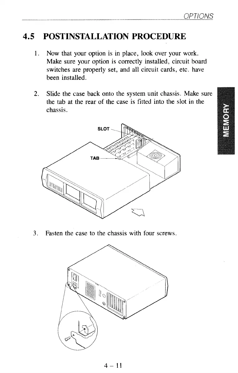 Fasten the case to the chassis with four screws.