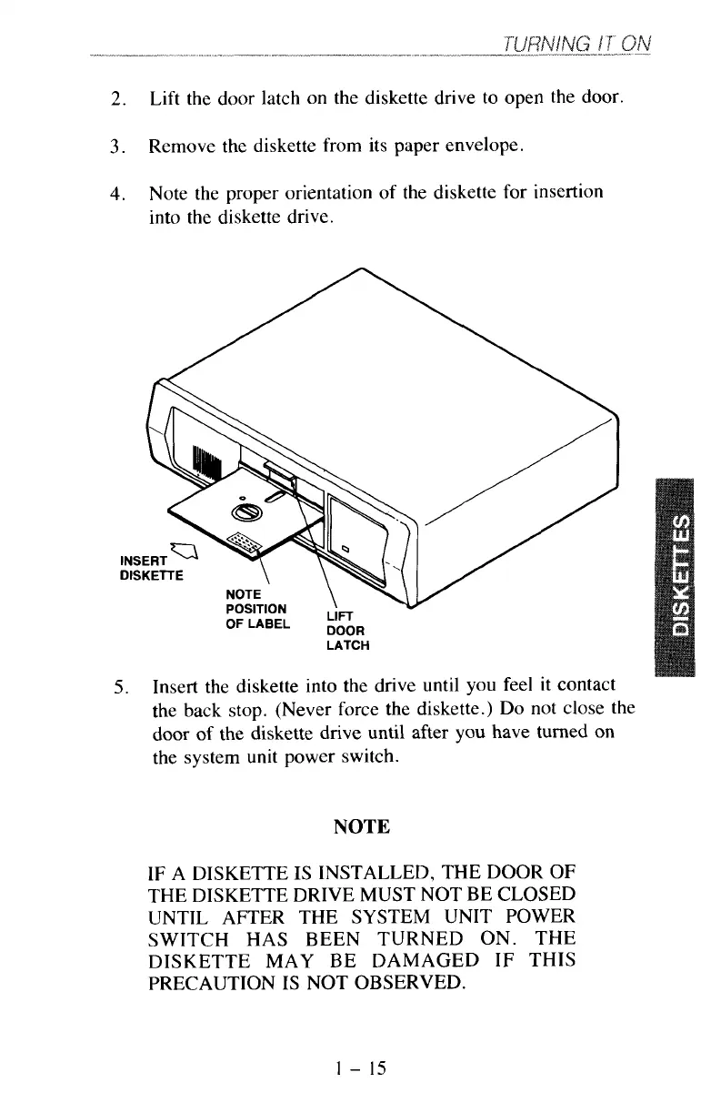 the back stop. (Never force the diskette.) Do not close the