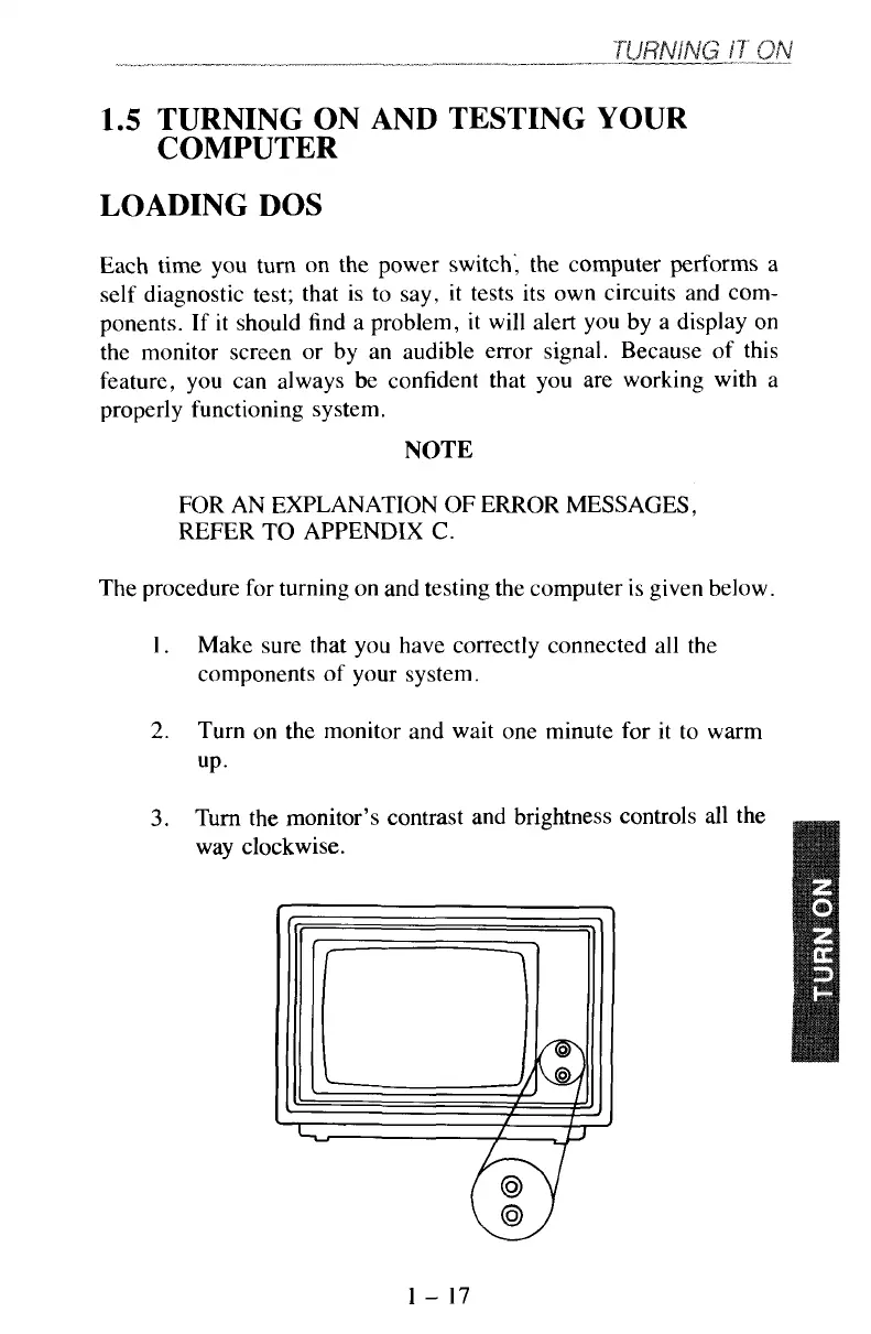 The procedure for turning on and testing the computer is given below.
