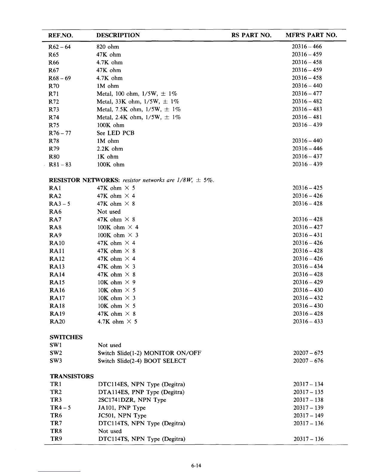 REF.NO. DESCRIPTION RS PART NO. MFR’S PART