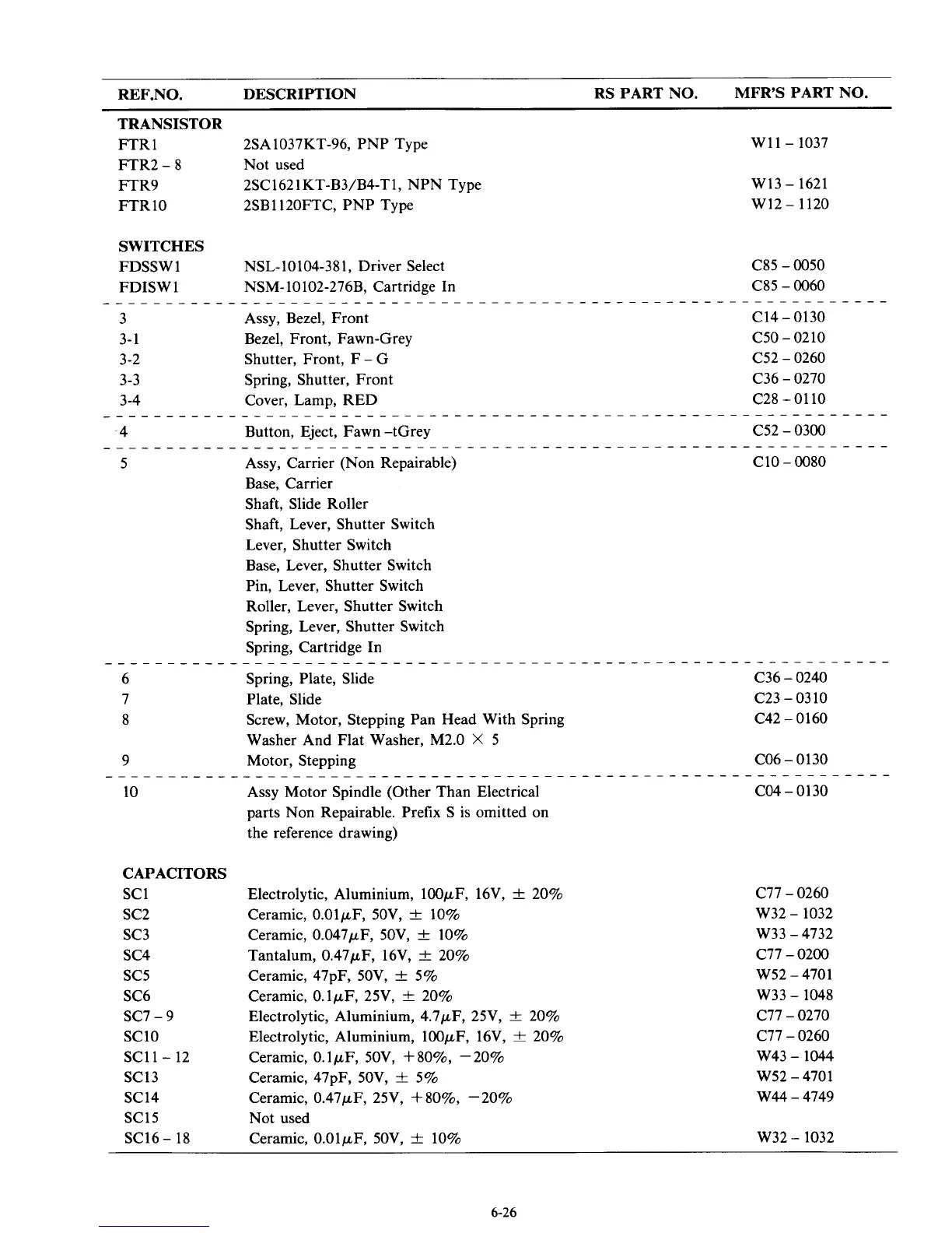 parts Non Repairable. Prefix