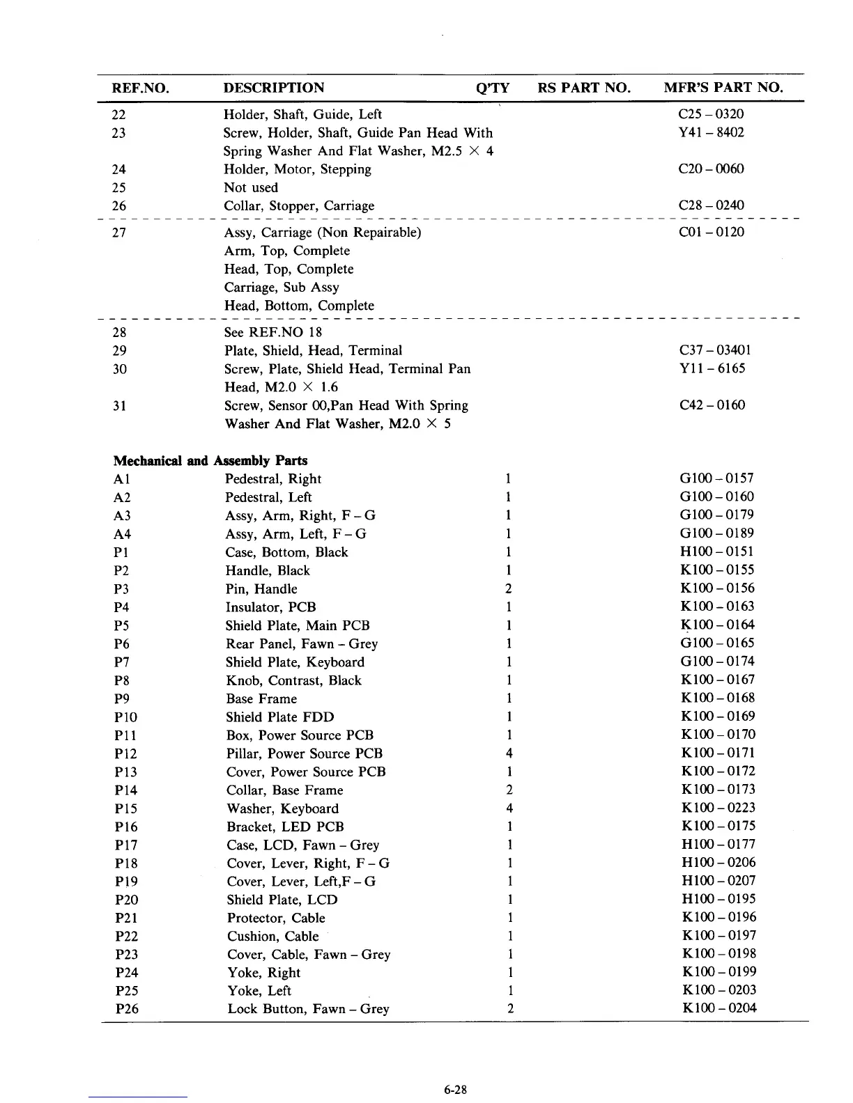 REF.NO. DESCRIPTION Q’TY RS PART NO. MFR’S PART NO.