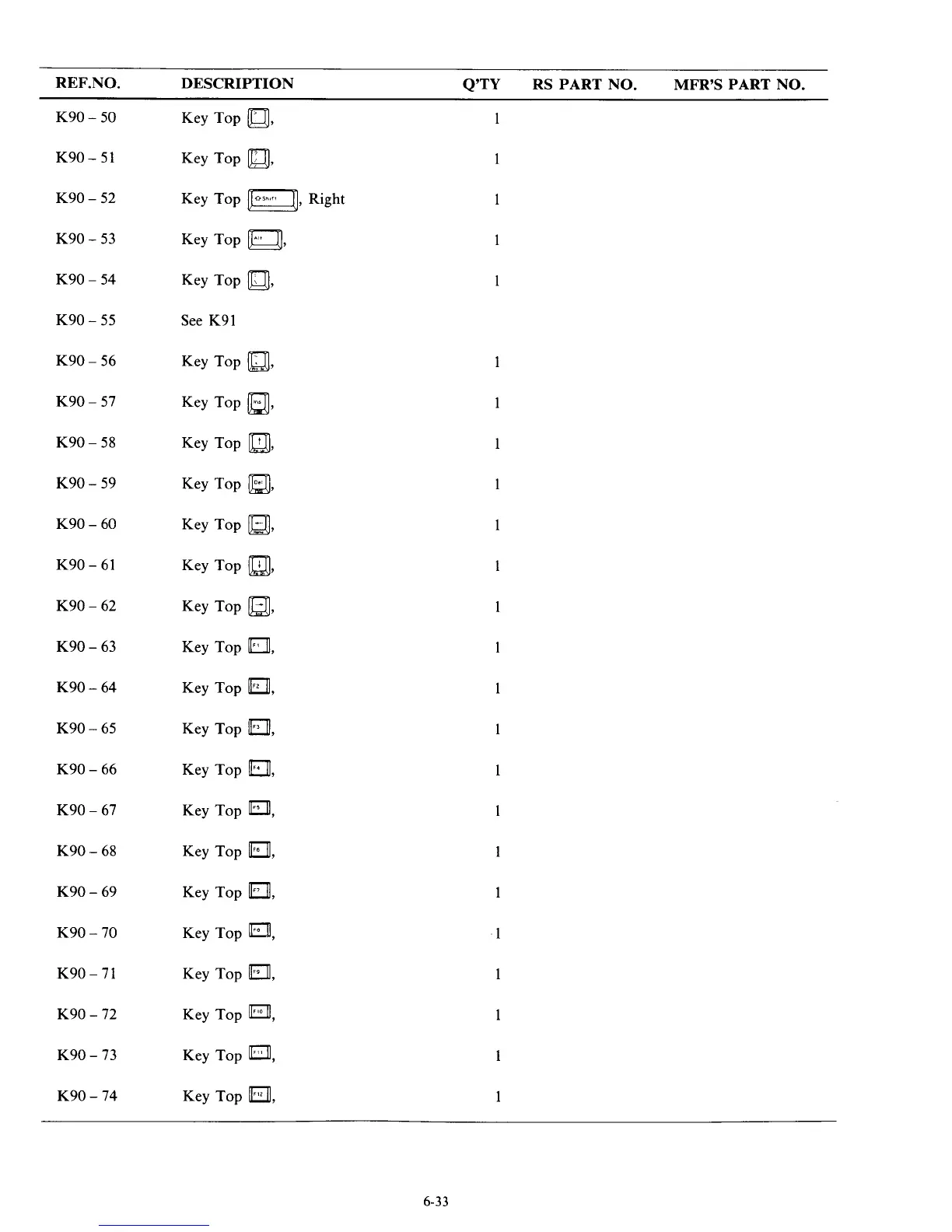 REF.NO. DESCRIPTION Q’TY RS PART NO. MFR’S PART NO.