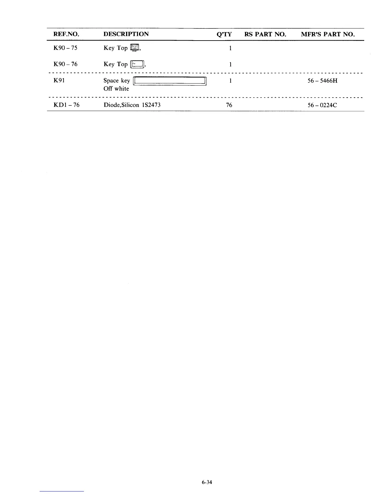 REF.NO. DESCRIPTION Q’TY RS PART NO. MFR’S PART NO.