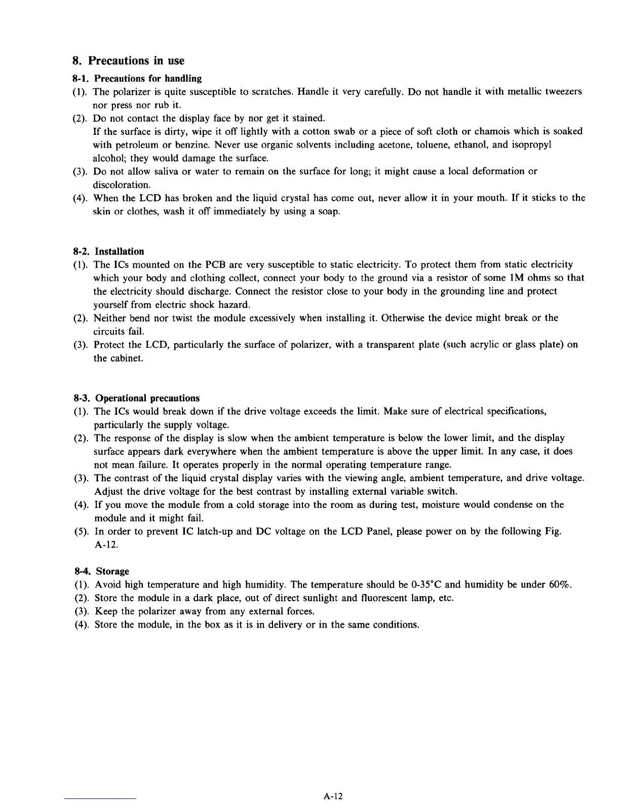 (1). The polarizer is quite susceptible to scratches. Handle it very carefully. Do not handle it with metallic tweezers