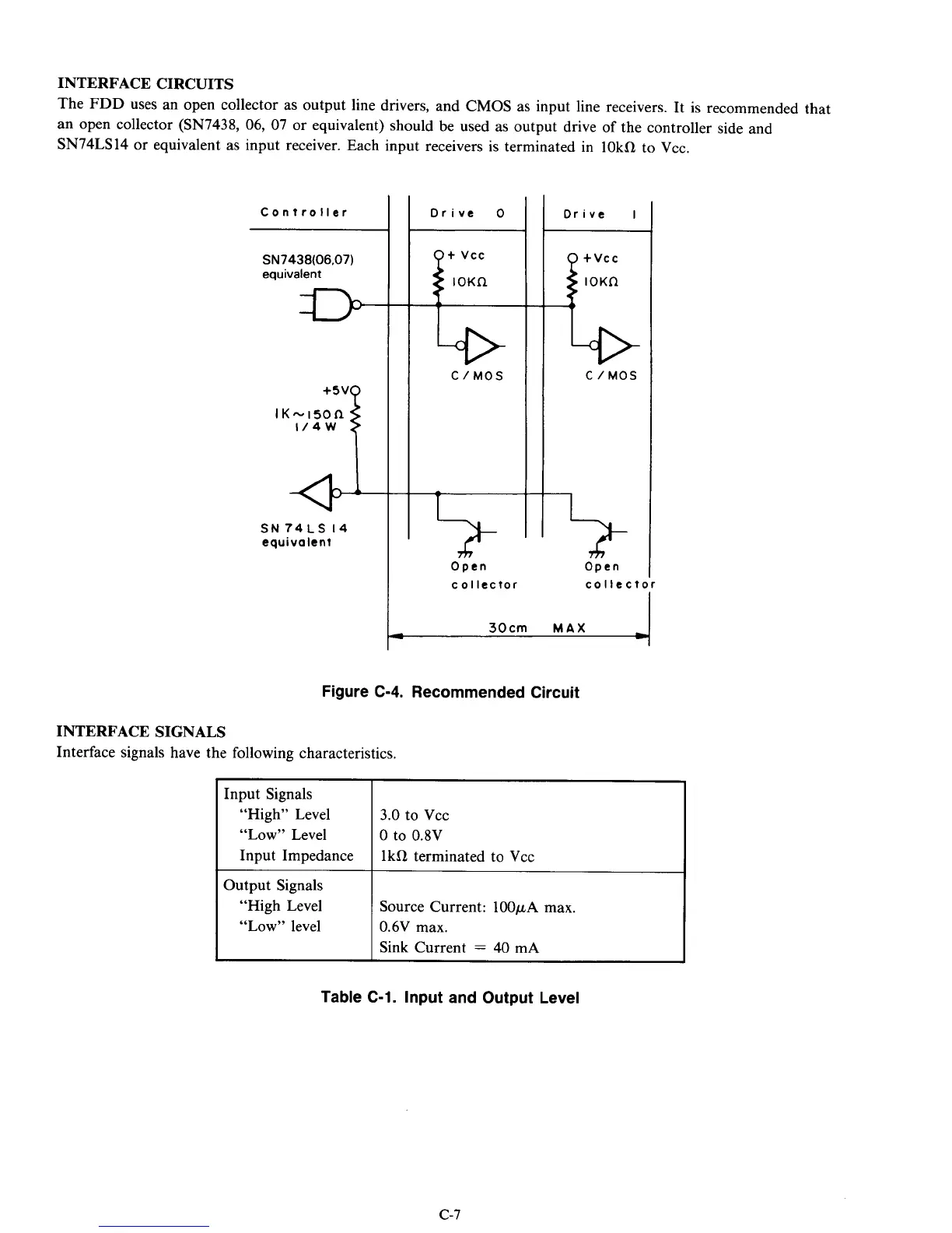 uses an open collector as output line drivers, and CMOS as input line receivers. It is recommended that