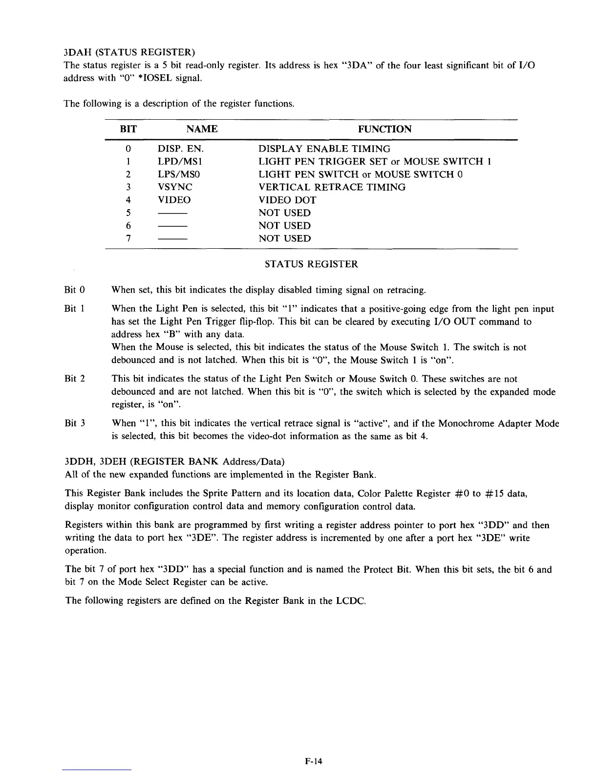 Registers within this bank are programmed by first writing a register address pointer to port hex “3DD” and then