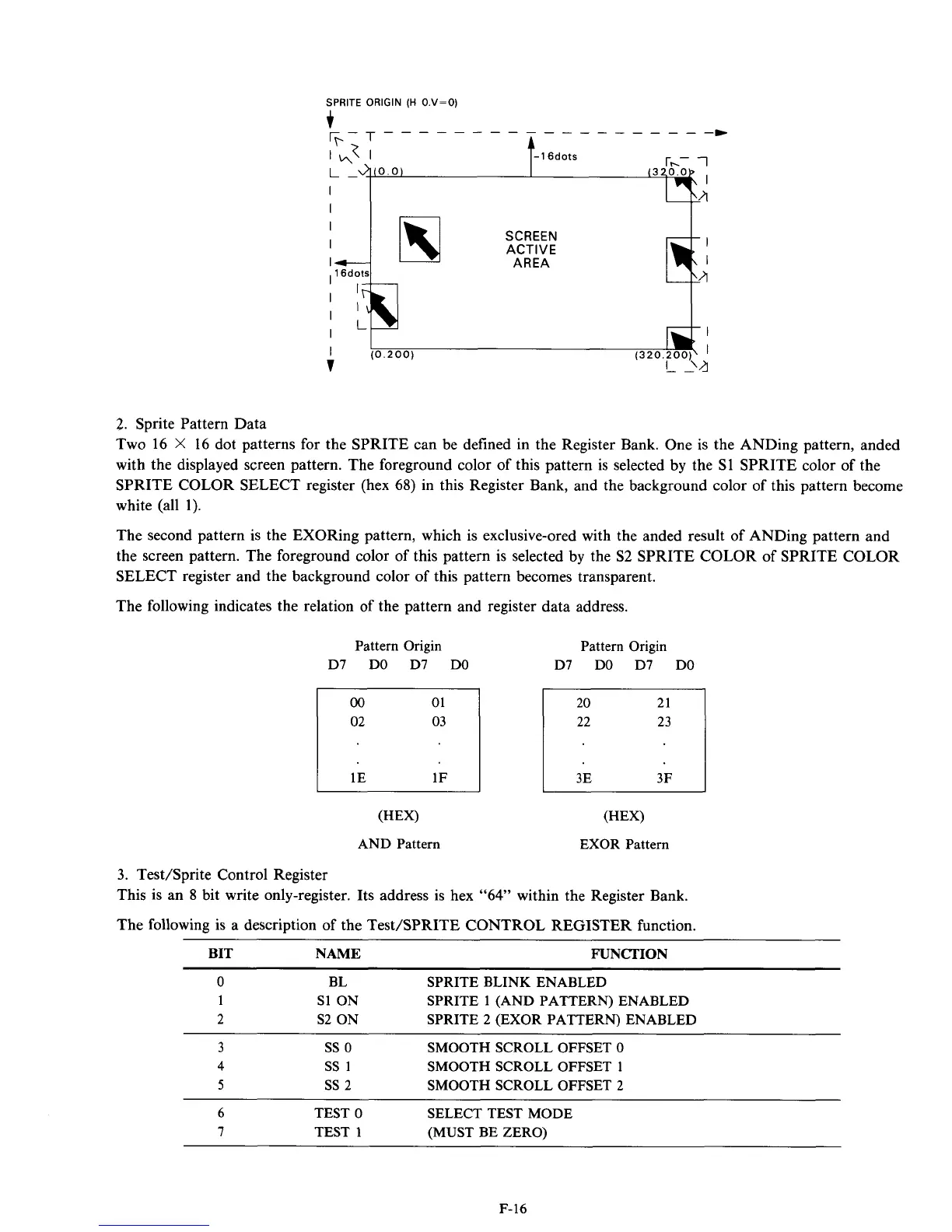 16 dot patterns for the SPRITE can be defined in the Register Bank. One is the ANDing pattern, anded