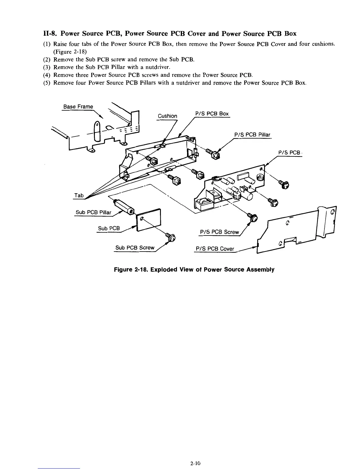 the Power Source PCB Box, then remove the Power Source PCB Cover and four cushions.