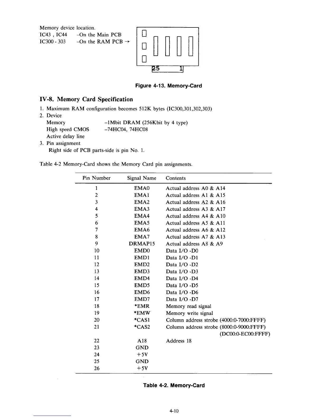 Table 4-2 Memory-Card shows the Memory Card pin assignments.