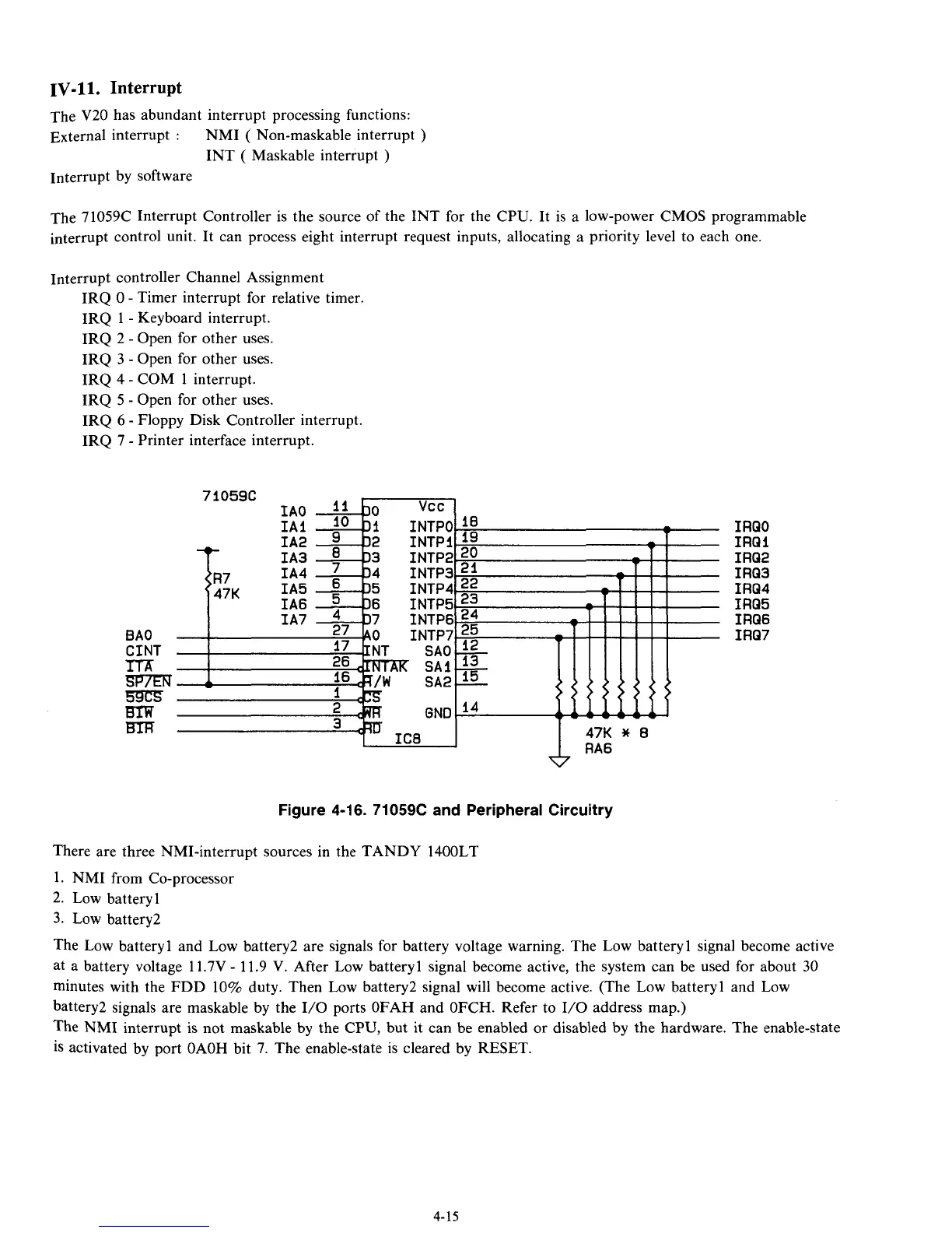 There are three NMI-interrupt sources in the TANDY 1400LT