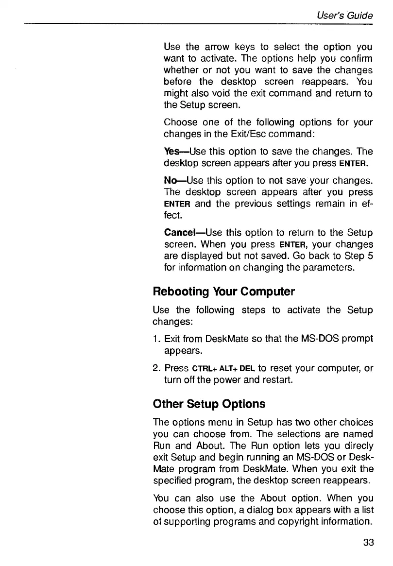 exit Setup and begin running an MS-DOS or Desk-