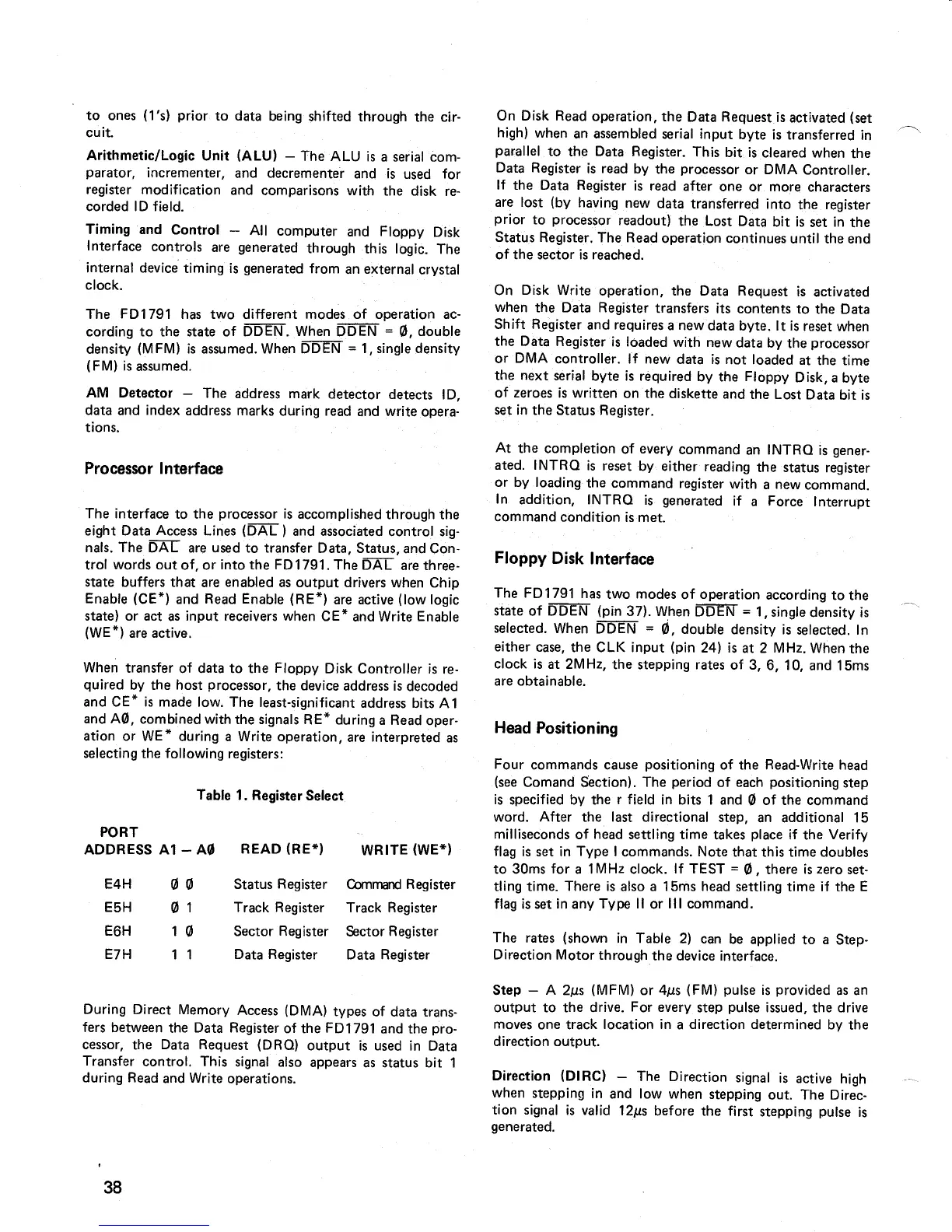 Tandy TRS-80 Model II - Processor Interface; FD1791 Interface; Head Positioning; Disk Read Operations