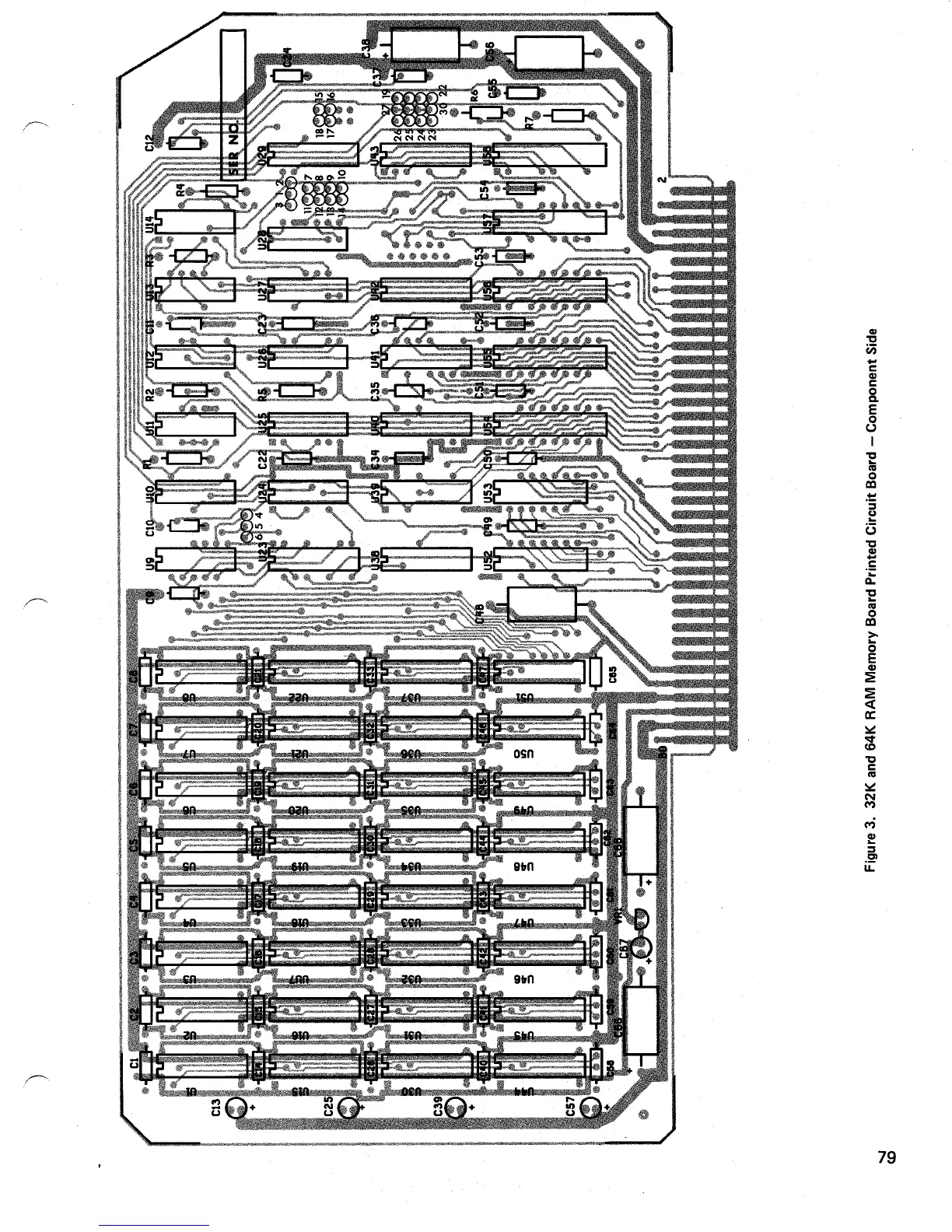 Tandy TRS-80 Model II - Figure 4. Model II Monitor [Display] P.C. Board - X-Ray View (Motorola); Figure 3. 32 K, and 64 K RAM Memory Board Printed Circuit Board - Component Side