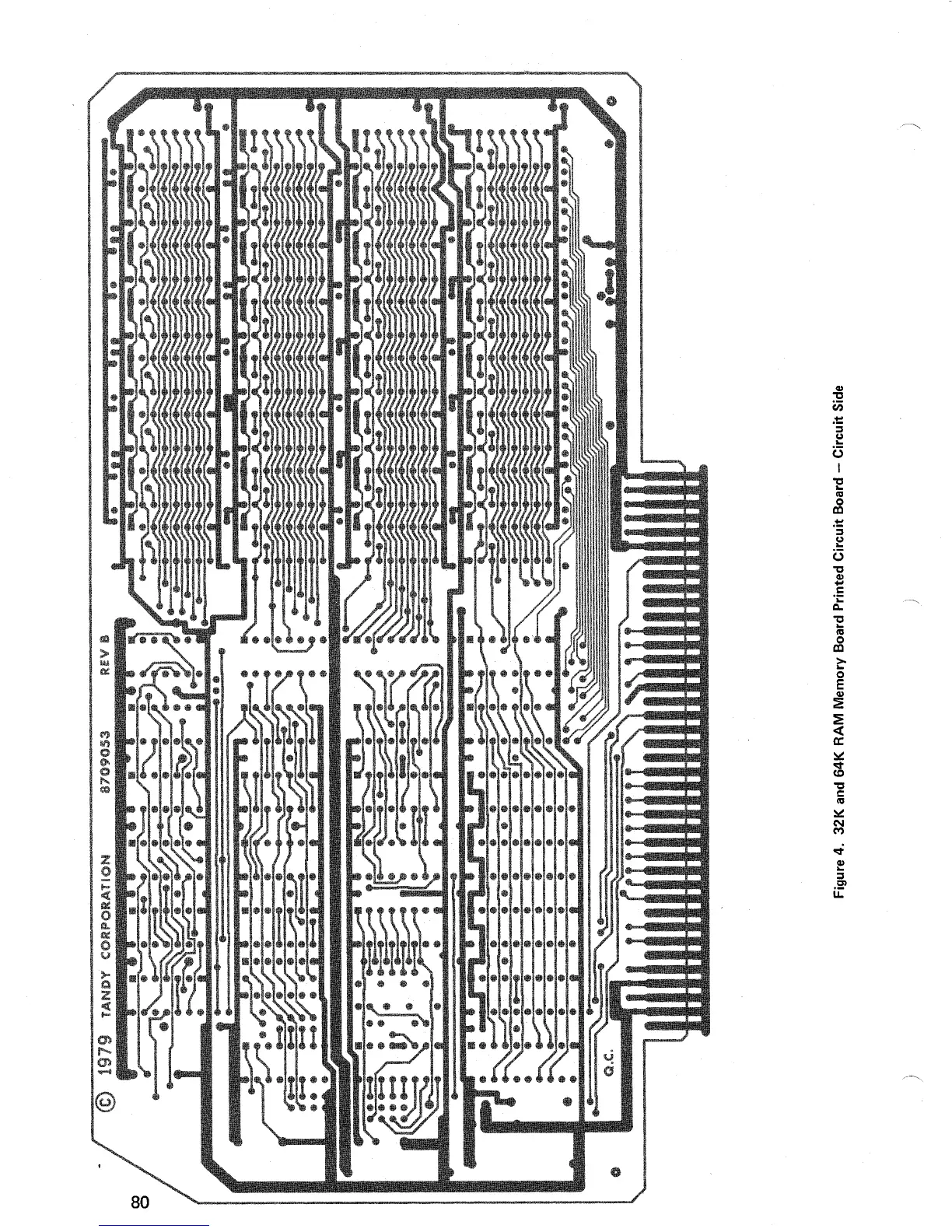 Tandy TRS-80 Model II - F. INSTALLATION; Preliminary Checkout; Cathode Ray Tube; Figure 4. 32 K and 64 K RAM Memory Board Printed Circuit Board - Circuit Side