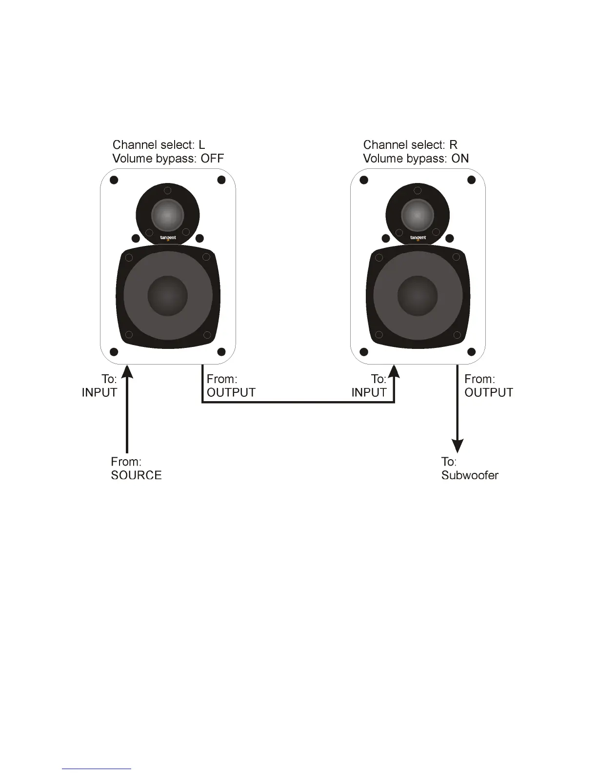 A imagem abaixo mostra como ligar duas colunas a uma fonte. A estrutura estéreo abaixo