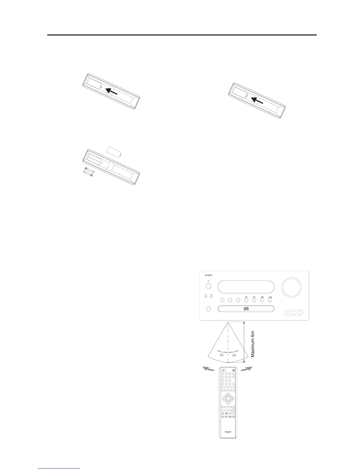 - If the remote control is not used for prolonged periods, remove the batteries from the remote control to avoid corrosion.