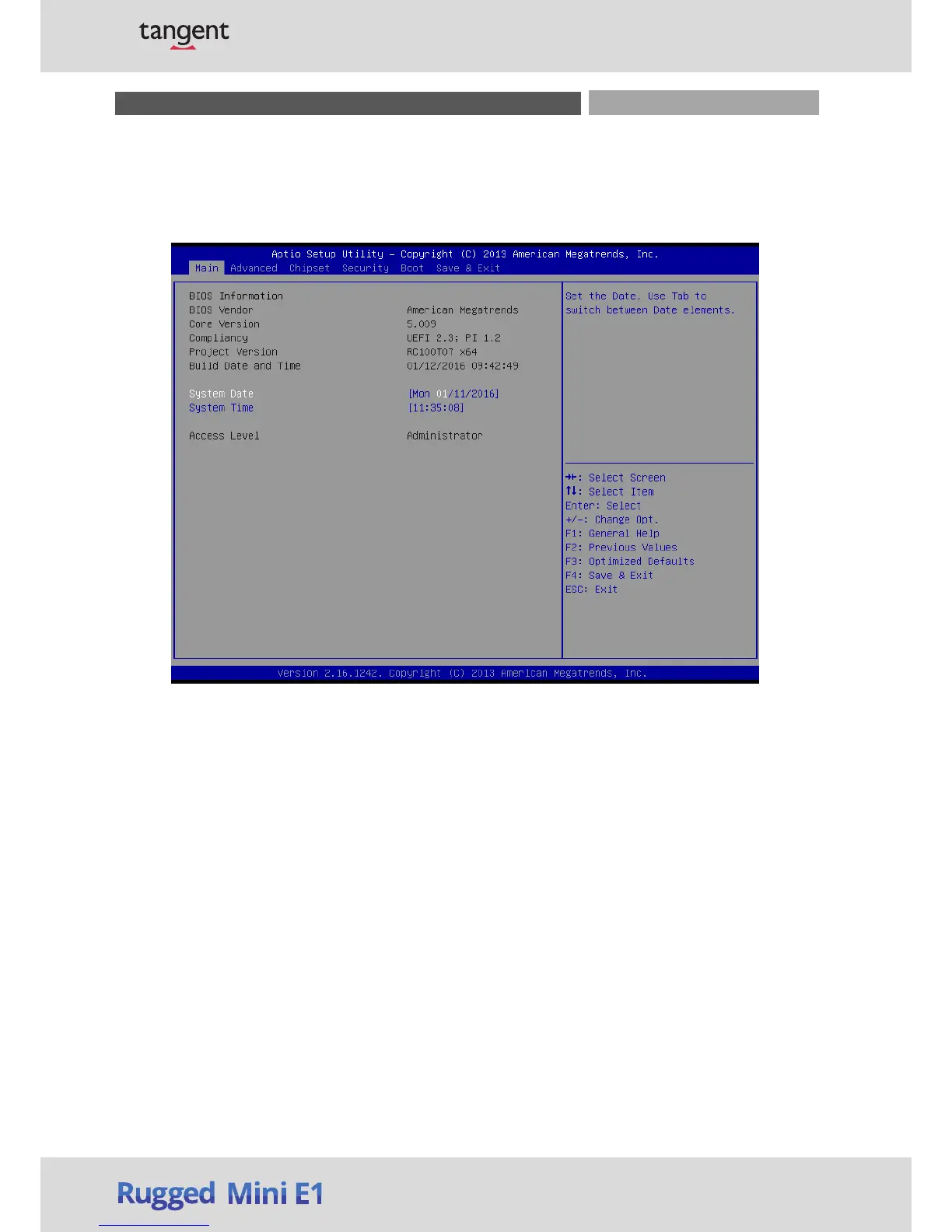 Tangent Rugged Mini E1 - Main Setup; System Date; System Time