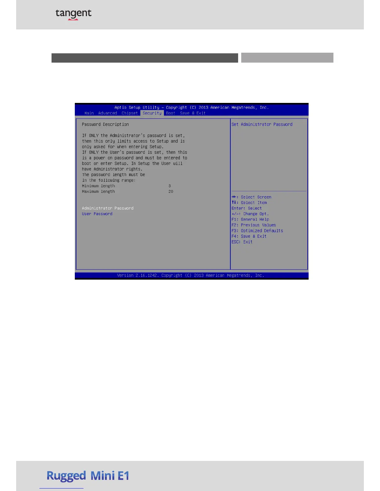 Tangent Rugged Mini E1 - Security; Administrators Password; Users Password
