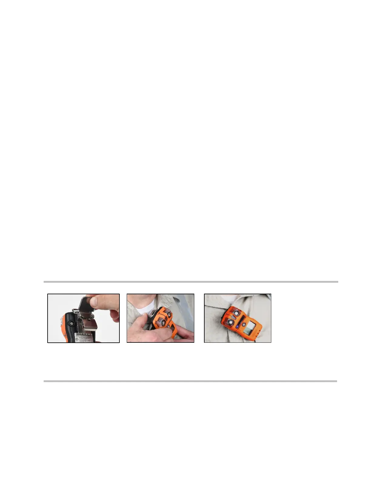 visual, or vibration alarms. Attach the garment clip as described below.