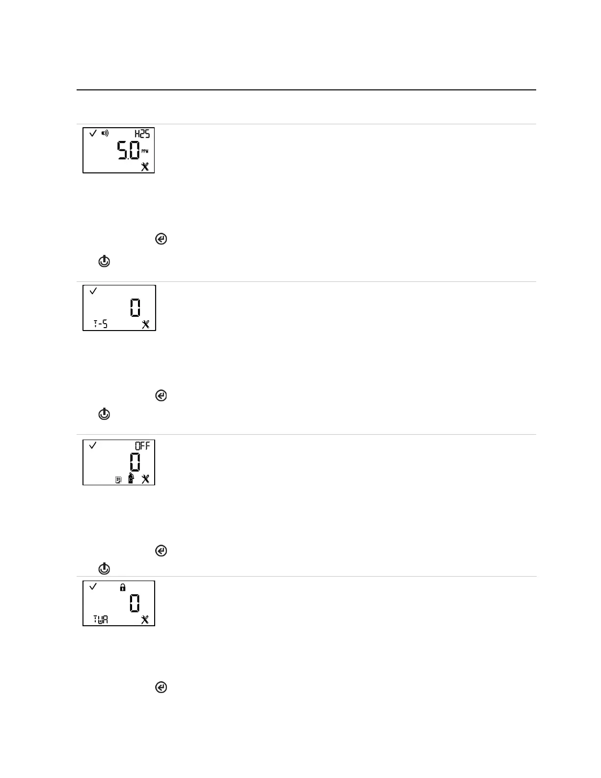 This screen features the status, configuration, “OFF”, calibration, and calendar icons. The