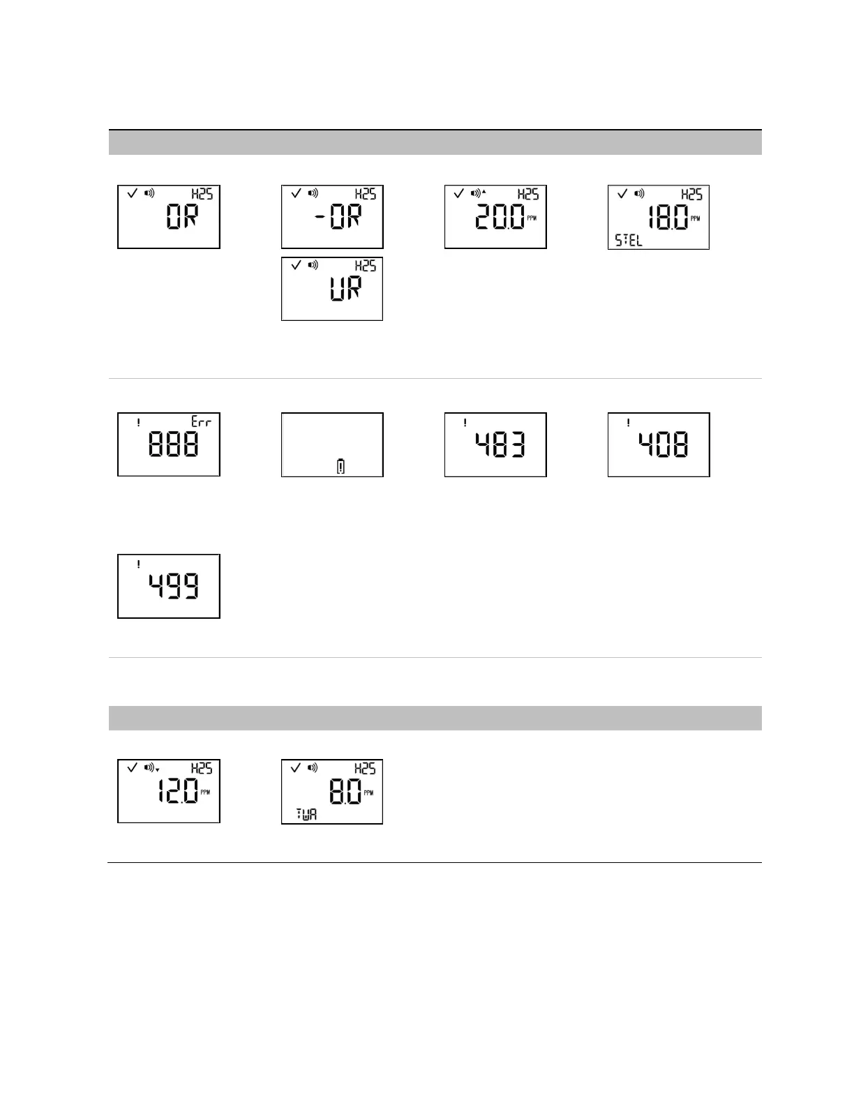 Note: If any 3 digit error code is displayed, first power the instrument down and restart. If the error code persists, the instrument must be