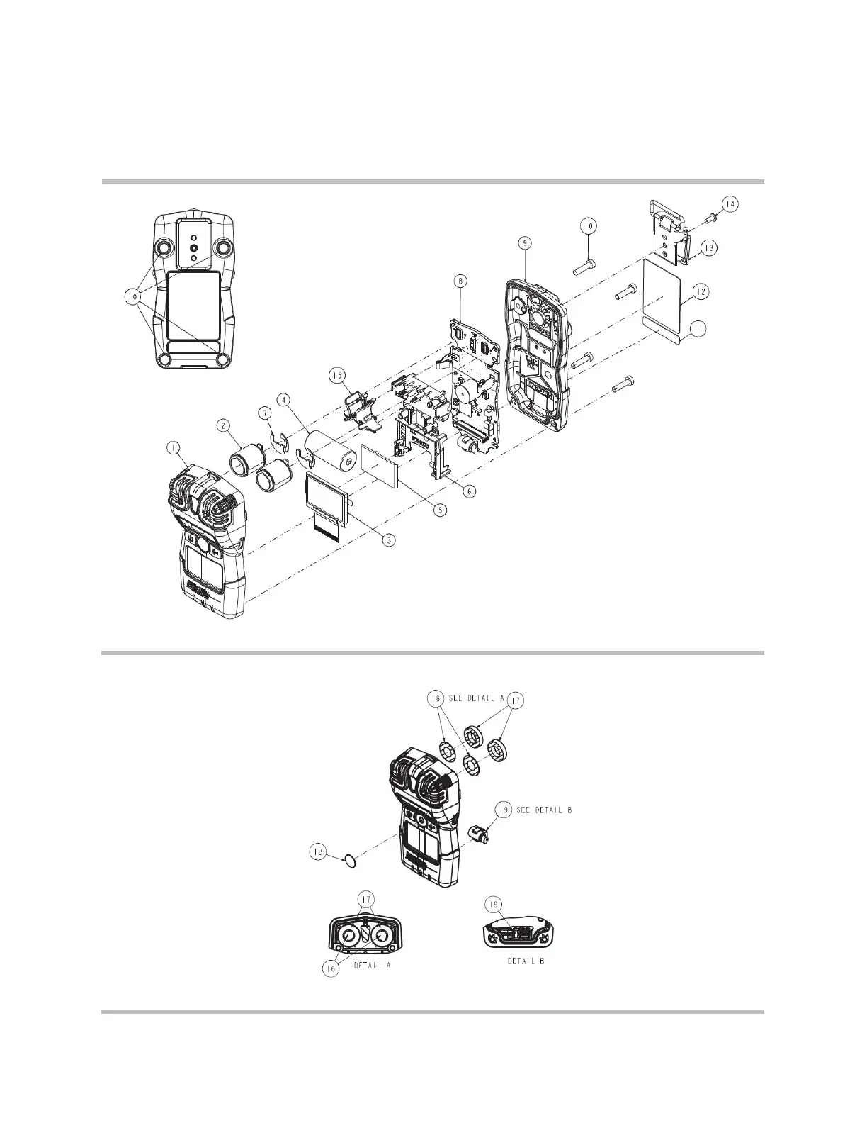 Refer to the three-dimensional diagrams for disassembled views of the instrument and its case top