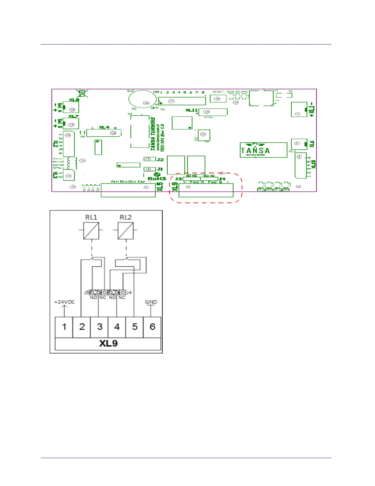 XL9 terminal has direction A and B pass relay