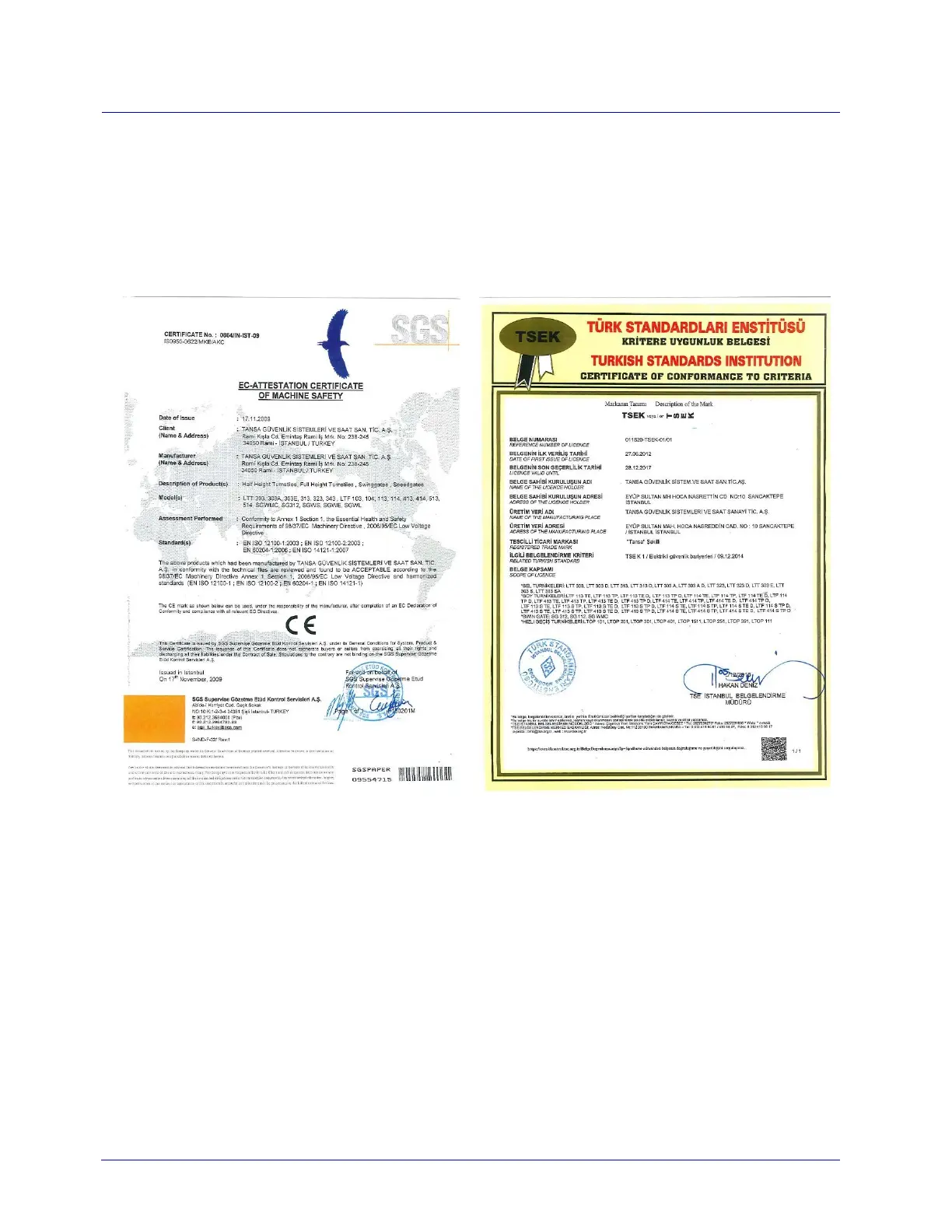 9.2 TSE Certificate and CE Certificate