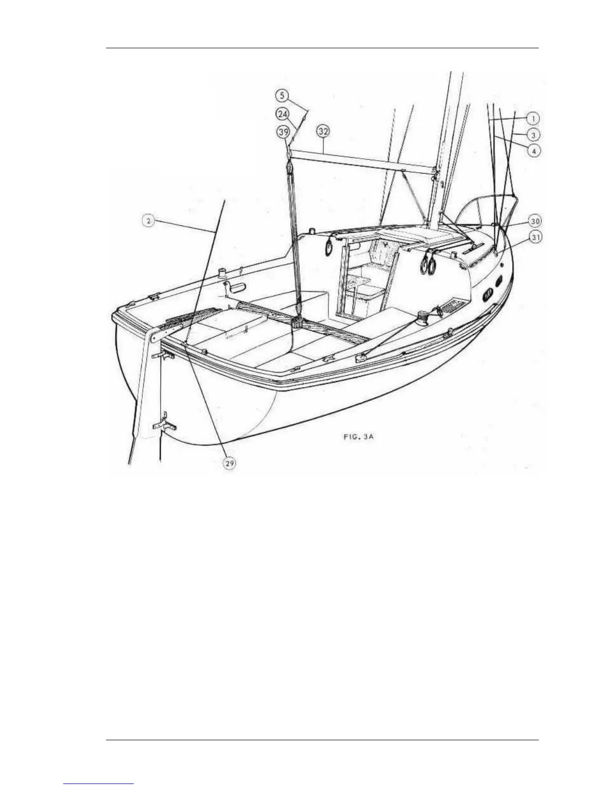the heel of the mast on the mast step (16). Fasten the mast hinge (16A) to