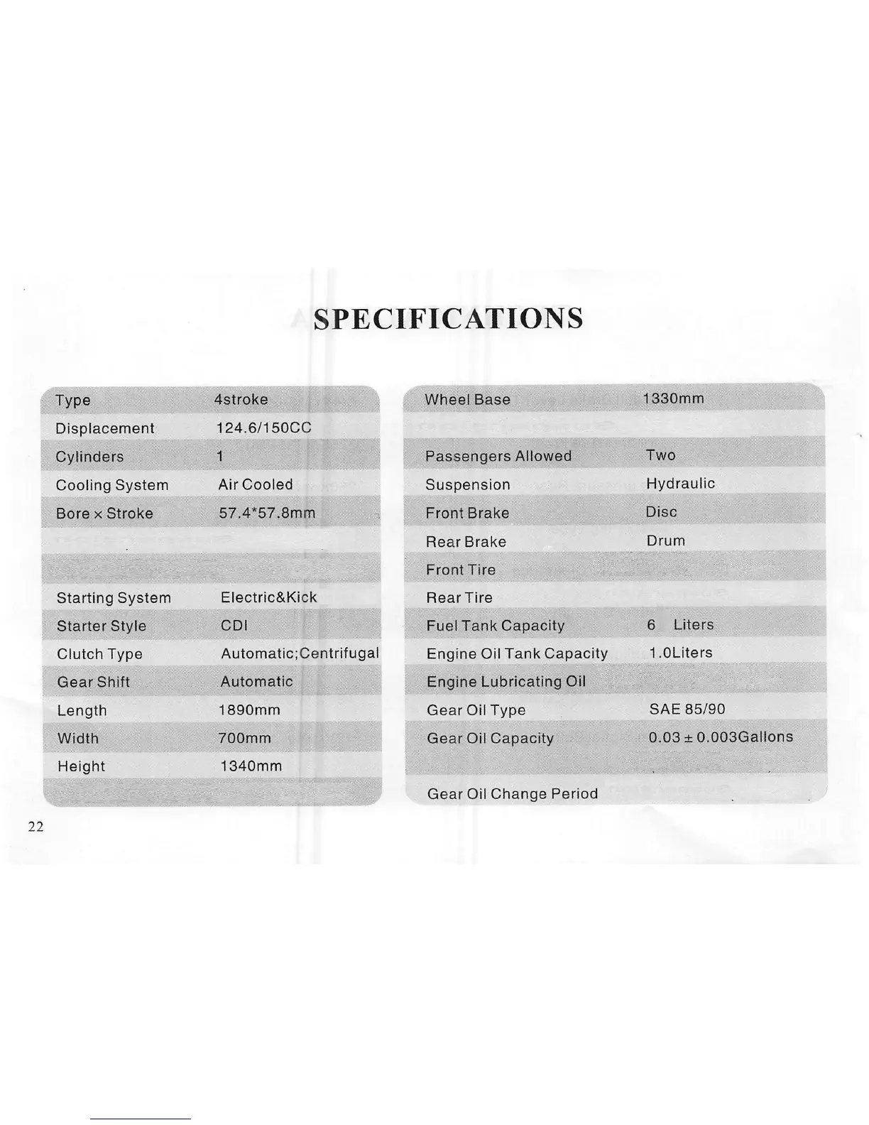 Valve Clearance IN 0.05mm EX 0.05mm