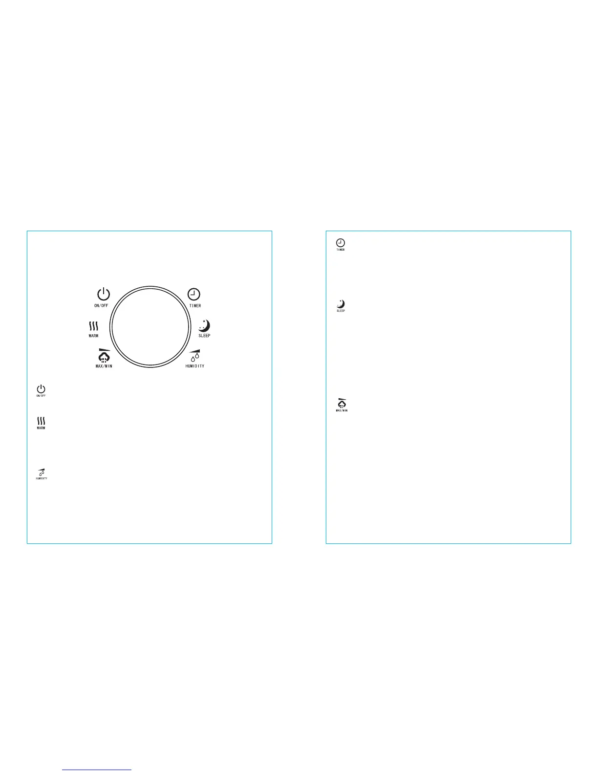 2. HEATING: Tap the HEATING Button to turn on warm mist and a red