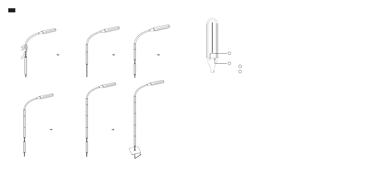 Note: Please do not turn the lamp head for over 180° to avoid damaging the gooseneck.