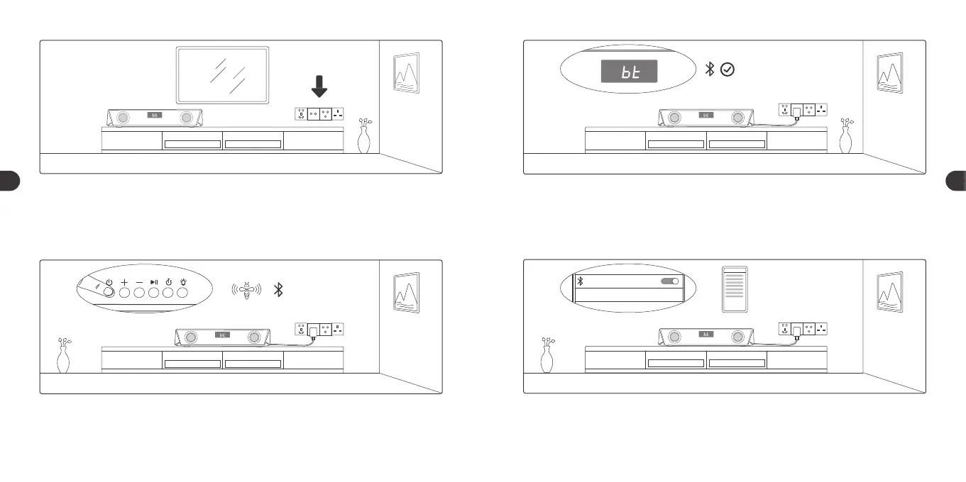 1.サウンドバーを電源に接続し、ビープ音が聞こえるまで、電源ボタンを3秒間長押