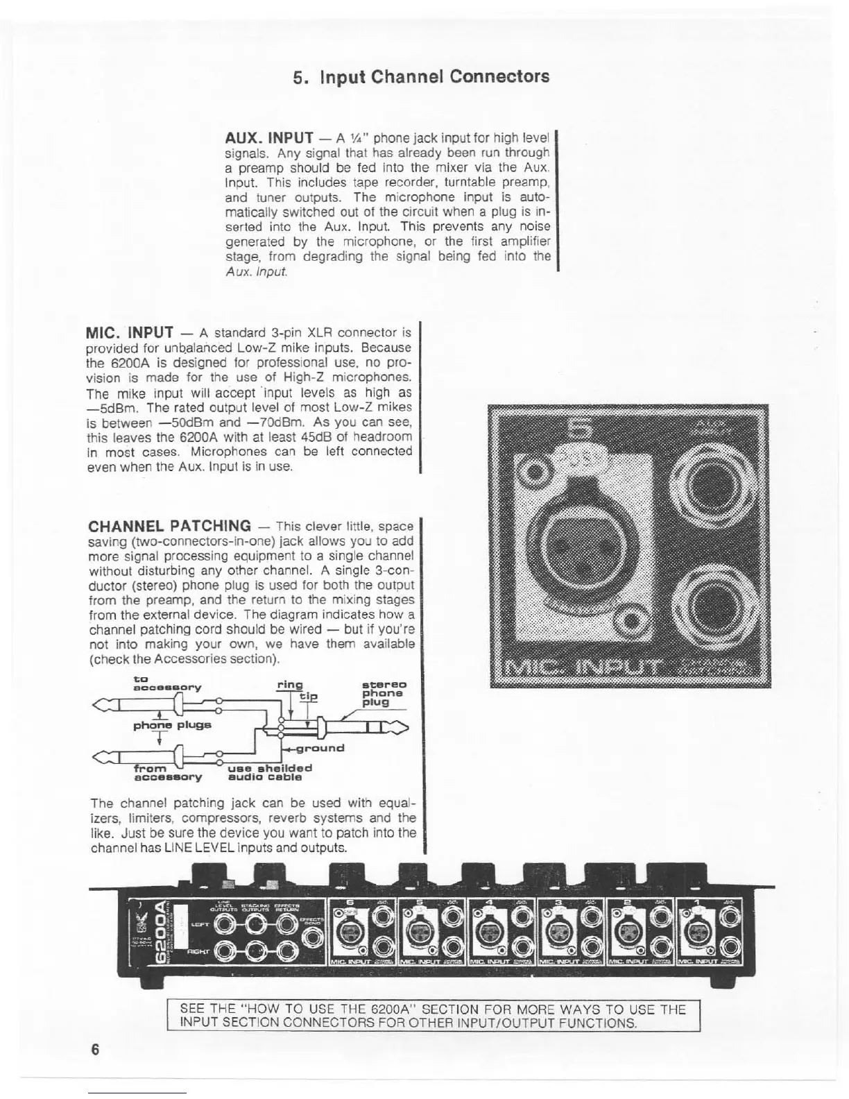Tapco 6200A - Input Channel Connectors; AUX. Input; MIC. Input; Channel Patching