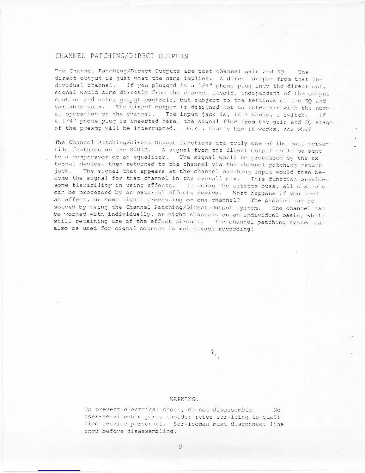 Tapco 8201B - Channel Patching;Direct Outputs