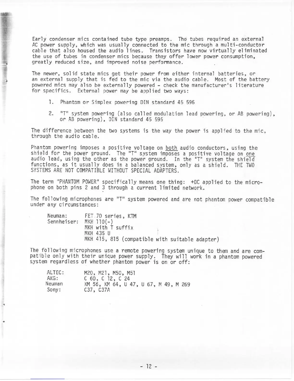 Tapco C-12 - PHANTOM POWER DETAILS AND MICROPHONE COMPATIBILITY; Phantom Power Operation Explained; Microphone Phantom Power Compatibility List