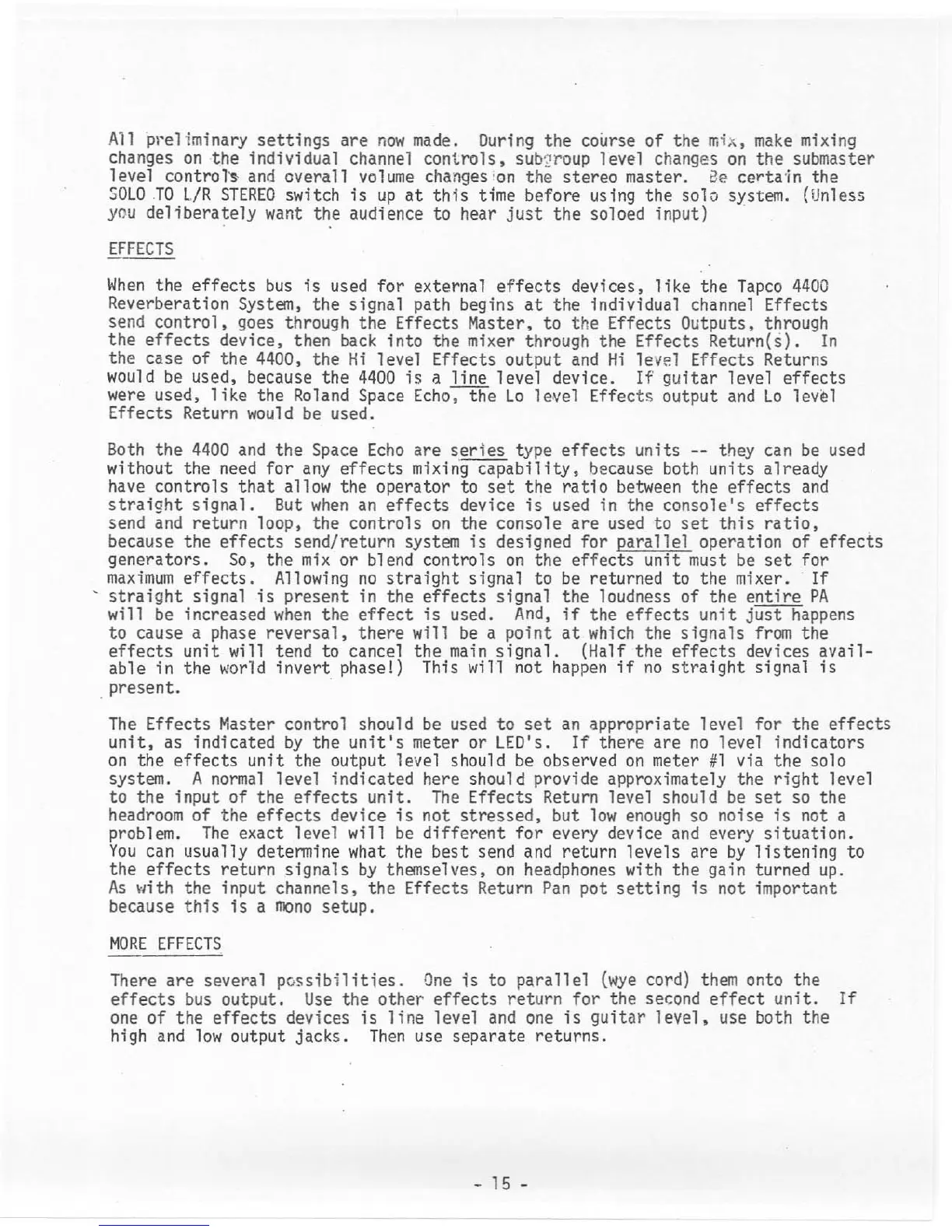 Tapco C-12 - EFFECTS BUS OPERATION AND ADDITIONAL EFFECTS
