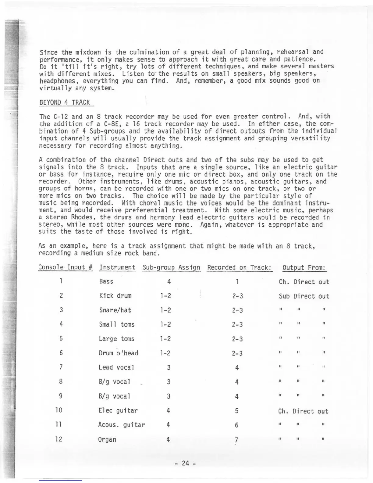 Tapco C-12 - ADVANCED MULTI-TRACK RECORDING CAPABILITIES; Beyond 4 Track Recording