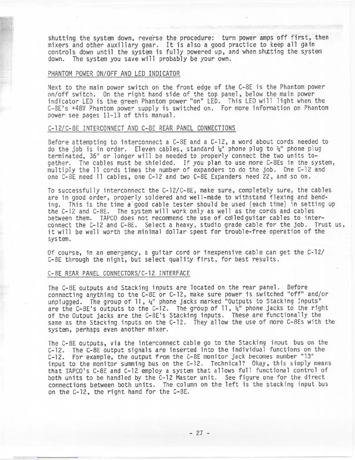 Tapco C-12 - C-12 AND C-8 E SYSTEM INTERCONNECT GUIDELINES; C-12;C-8 E Interconnect Procedures; C-8 E Rear Panel Connections to C-12