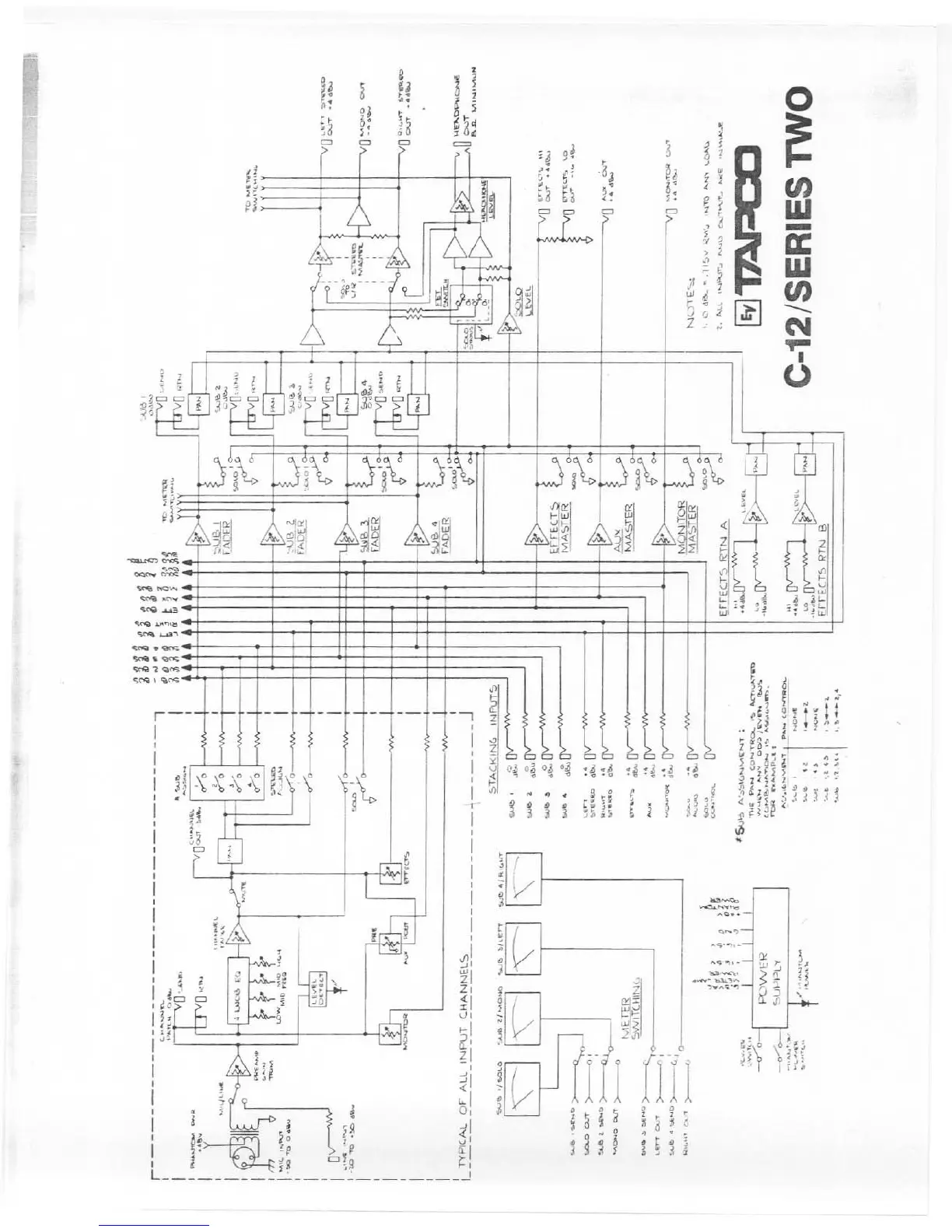 Tapco C-12 - INPUT CHANNEL BLOCK DIAGRAM AND SYSTEM NOTES; Typical Input Channel Signal Flow Diagram