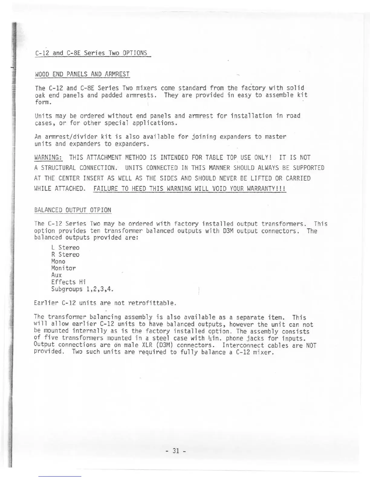 Tapco C-12 - SYSTEM OPTIONS AND BALANCED OUTPUTS; Balanced Output Transformer Option